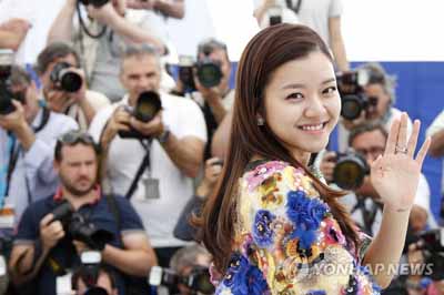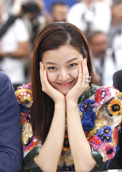 칸에 간 한국 여배우 고아성이 ‘오피스’ 시사회에 앞서 포토콜 도중 포즈를 취하고 있다.