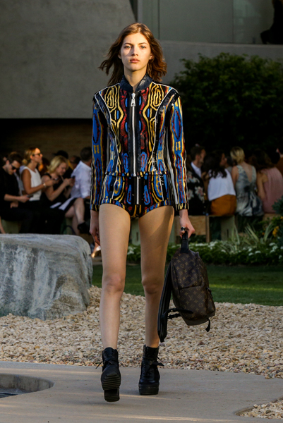 한 모델이 캘리포니아 팜스프링스에서 6일 열린 루이비통 크루즈 쇼에서 캣 워킹하고 있다.