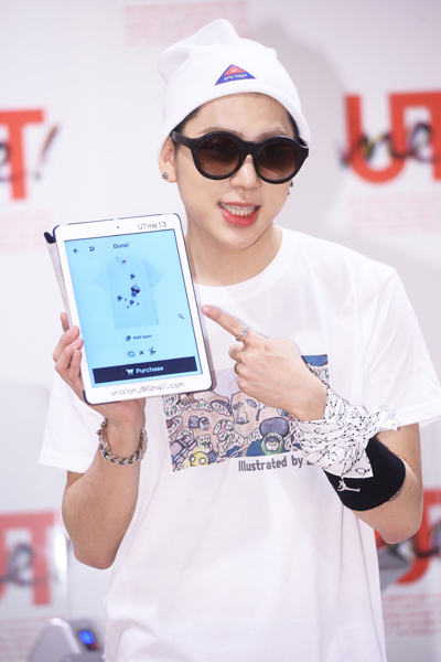 27일 서울 유니클로 명동중앙점에서 열린 제품 출시 기념행사에 참석한 가수 지코가 포즈를 취하고 있다.
