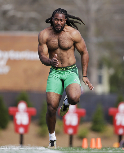조지아 대학에서 18일 열린 NFL 프로데이 트라이아웃에서 래믹 윌슨이 40야드 달리기에 도전하고 있다.