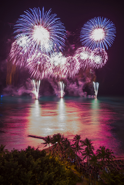 호놀룰루에서 지난 주말 이틀 동안 열린 환태평양 문화교류 잔치에서 8일 일본 나가오카에서 출품한 멋진 축포가 와이키키 상공을 수놓고 있다.
