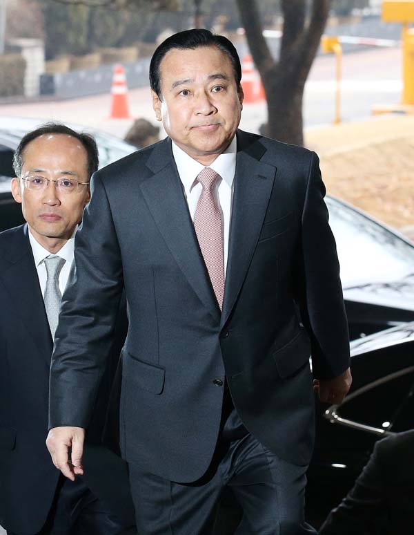박근혜 정부 출범 이후 약 2년만에 제2대 국무총리에 오른 이완구 신임 총리가 17일 (한국시간) 오전 서울 세종로 정부서울청사로 첫 출근하고 있다. 이 총리는 출근 소감을 묻는 취재진의 질문에 "국민의 뜻을 잘 받들어서 열심히 하겠다"고 밝혔다.