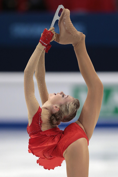 러시아의 엘리나 라디오노바가 29일 스웨덴 스톡홀름에서 열리고 있는 유럽 피겨스케이팅 챔피언십에서 숏프로그램을 연기하고 있다.