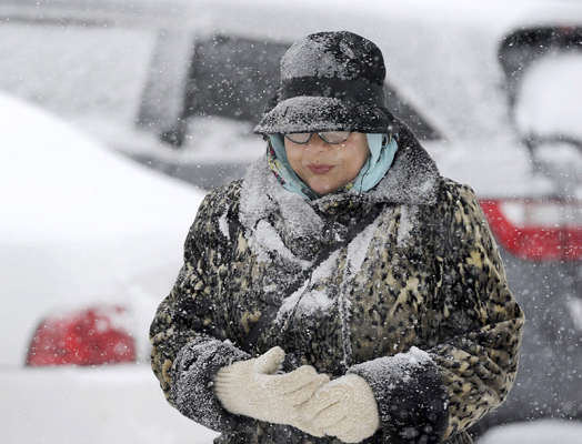 펜실베니아 어리에서 11인 한 여성이 눈보라를 맞으며 출근하고 있다. 이곳에는 낮동안 5~9인치의 폭설이 쏟아졌다.