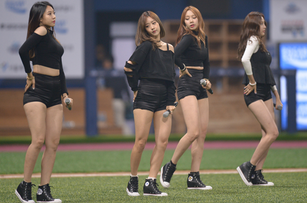 4일 서울 고척 스카이돔구장에서 한국과 쿠바의2015 서울 수퍼시리즈가 열렸다. 경기 종료후 걸그룹 베스티가 축하공연을 하고 있다.