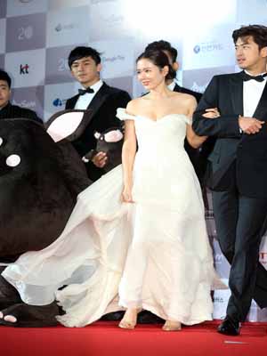 배우 손예진이 2일 오후부산 해운대구 노보텔 앰배서더 부산에서 열린 영화 ‘나쁜놈은 반드시 죽는다’ 제작보고회 포토타임에서 포즈를 취하고있다. 왼쪽부터 배우신현준, 배우 손예진, 영화감독 강제규, 영화감독 펑샤오강.
