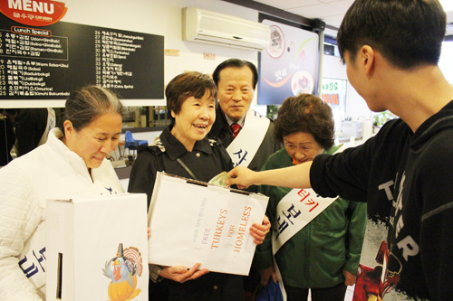 사랑의 터키 한미재단(회장 전상복)이 1일 뉴저지 팰리세이즈팍 등에서 ‘2014년 제28회 사랑의 터키 보내기’ 가두모금 캠페인을 실시했다. 뉴욕한국일보 특별후원으로 실시된 이날 캠페인에는 10여명의 자원봉사자들이 비가 오는 궂은 날씨에도 2,750달러를 모금했다. 뉴저지 캡우동 식당의 직원이 모금 캠페인에 참여하고 있다.