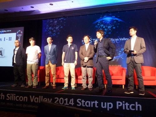 지난 25일 미래부가 주최하고 코트라와 정보통신산업진흥원이 공동으로 주관한 'K-TECh SV 2014행사'에서 한국내 '벤처창업 지원사업'참가자 중 우수 혁신 기업들이 참여한 Start-Up IR에서 창업기업 23개시의 경연대회가 펼쳐졌다. 이번 행사에는 북미지역 글로벌 VC, 엔젤투자자, 일반 투자자 등 200여명이 자리를 함께 했으며 현지 투자가를 대상으로 23개사가 기업별로 4분씩 순차적으로 발표를 했다. 사진은 패널의 질문에 응답을 하는 창업기업 관계자들