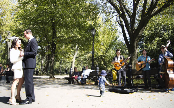 가을로 접어드는 '천고마비'의 달, 9월이 성큼 다가왔다. 특히 이달에는 우리 민족 최대의 명절인 추석이 들어 있어 가족, 친지 등과 한해의 풍성함을 나누고 감사하는 시기이다. 또 선남선녀들이 화촉을 밝히는 연중 최대 결혼시즌이기도 하다. 지난 31일 웨딩촬영을 위해 맨하탄 센트럴 팍을 찾은 예비 신랑, 신부가 길거리 악사들의 음악에 춤을 추며 행복한 한때를 보내고 있다.