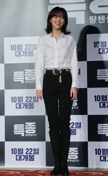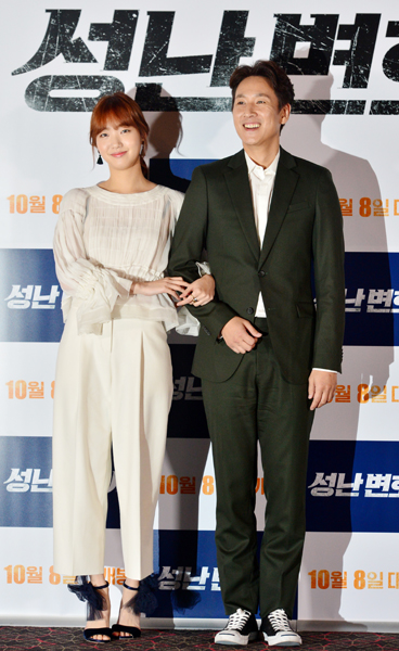 영화 ‘성난 변호사’의 주연배우 김고은(왼쪽)과 이선균이 24일(한국 시간) 서울 성동구 CGV 왕십리에서 열린 영화 시사회에서 포즈를 취하고 있다.