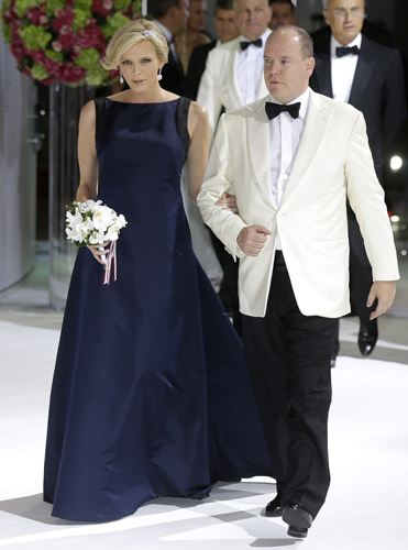 지난 1일 모나코에서 열린 자선 갤라 ‘모나코 적십자사 무도회’에 참석한 모나코의 알버트 왕자와 부인 샬린 공주가 팔짱을 끼고 행사장에 들어서고 있다.