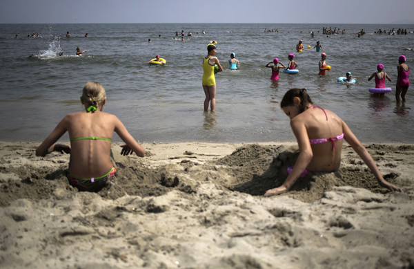 프랑스 파리 루브르 박물관 앞에서 29일 한 여행객 머리와 어깨 위에 비둘기들이 앉아 있다.