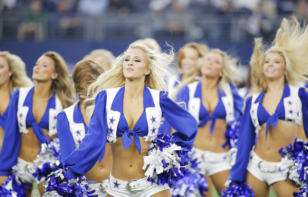 달라스 카우보이 치어리더들이 지난 1일 알링턴에서 열렸던 NFL 풋볼게임 시애틀 시혹스와의 경기 중반 응원전을 펼치고 있다.