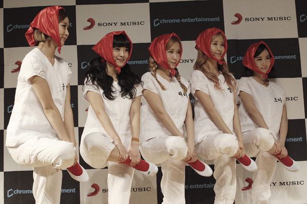 오는 5월3일 할리웃보울 음악대축제 무대에 서는 한국 아이돌 그룹 크레용팝이 28일 서울에서 새로 출시한 앨범을 발표하고 있다.