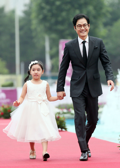 경기도 부천시 부천실내체육관에서 열린 제19회 부천국제판타스틱영화제 폐막식에서 배우 윤지민과 김성균이 레드카펫을 밟고 있다.