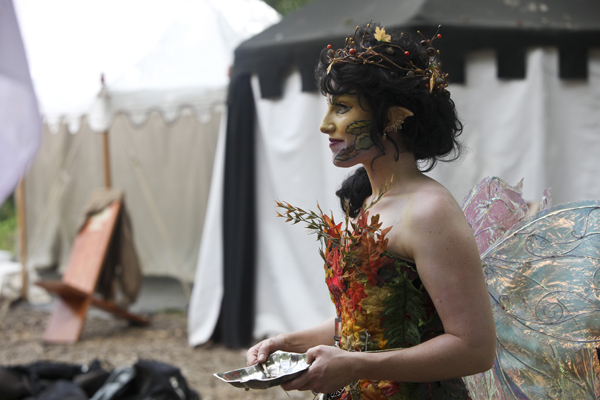 25일 미시간 어거스타에서 열린 ‘블랙락 메디이벌 페스티벌’에서 치장을 한 여성이 걸어가고 있다.