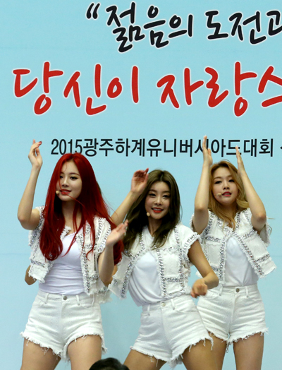 23일 청와대에서 열린 광주 유니버시아드 대회 선수및 관계자 초청 오찬에서 걸스데이가 공연하고 있다.